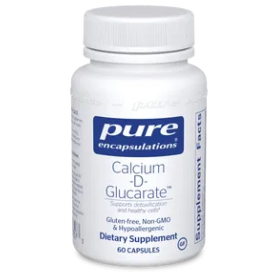 Pure Encapsulations Calcium-D-Glucarate supports healthy detoxification and cellular function. It is a patented form of glucaric acid, derived from cornstarch and glucose.