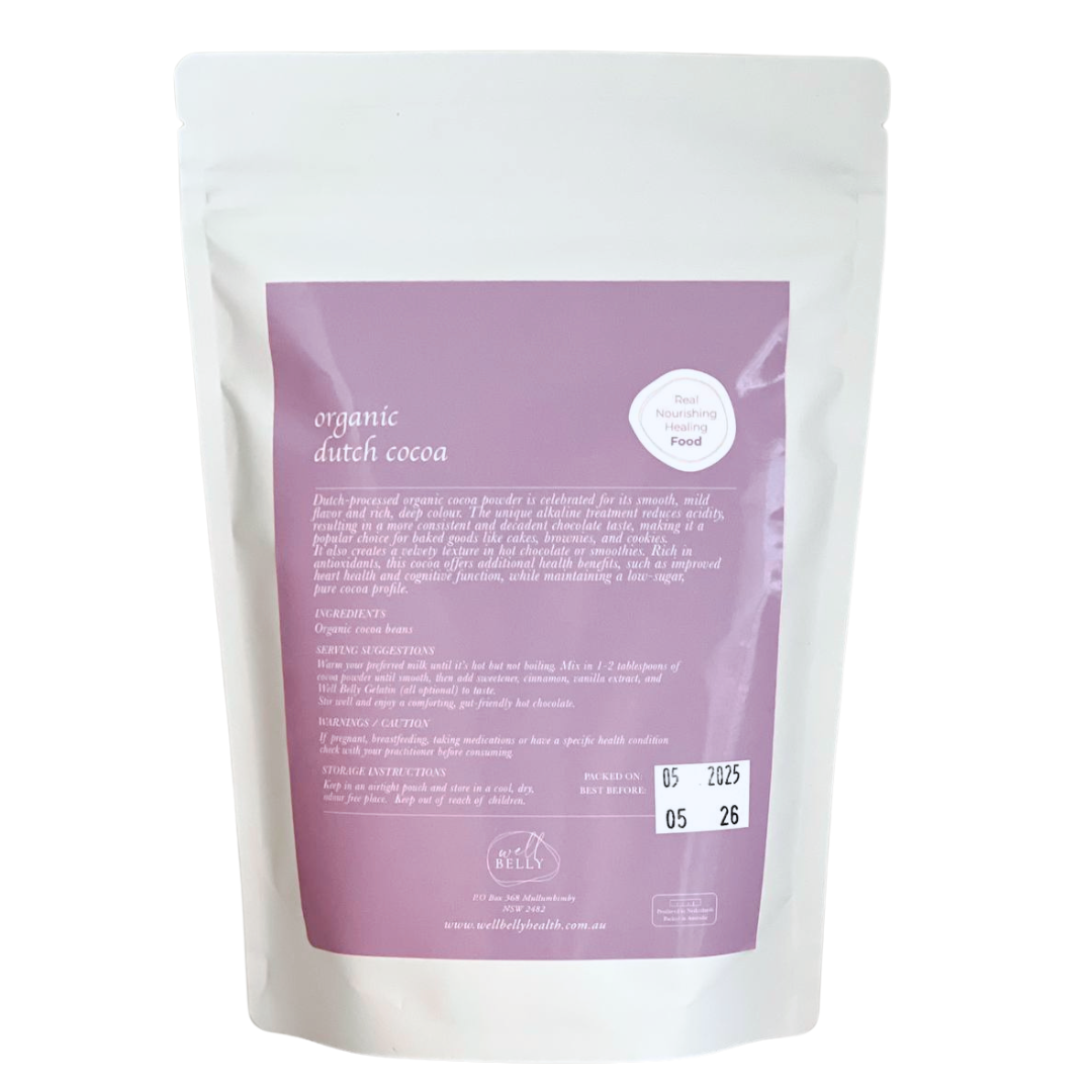 Dutch processed cocoa is the best option for supporting gut health, as raw cacao is quite hard to digest.Â
