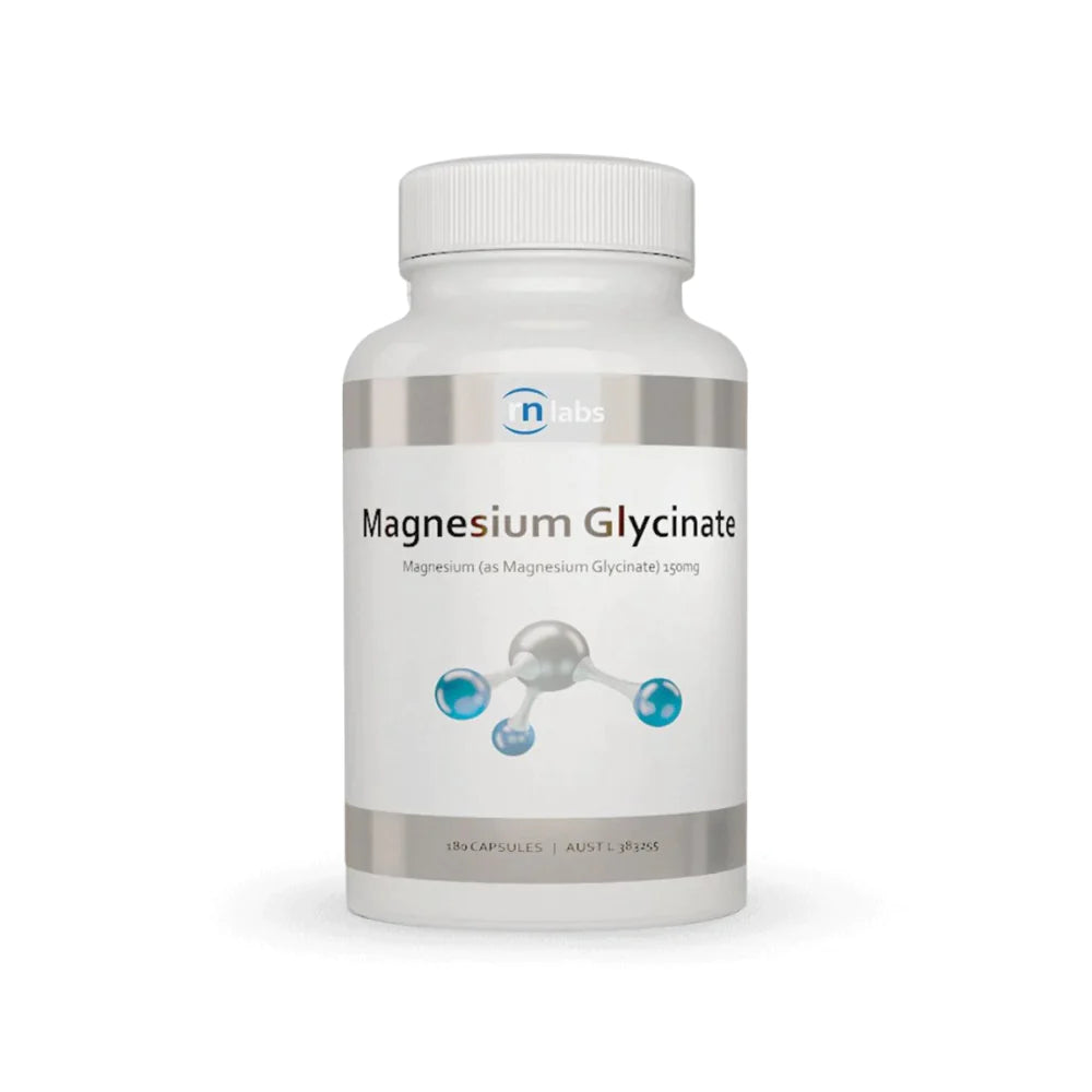 RN Labs Magnesium Glycinate is a highly absorbed glycinate chelate form of magnesium, delivering magnesium for over 300 enzymatic processes in the body, including supporting brain and nervous system health.